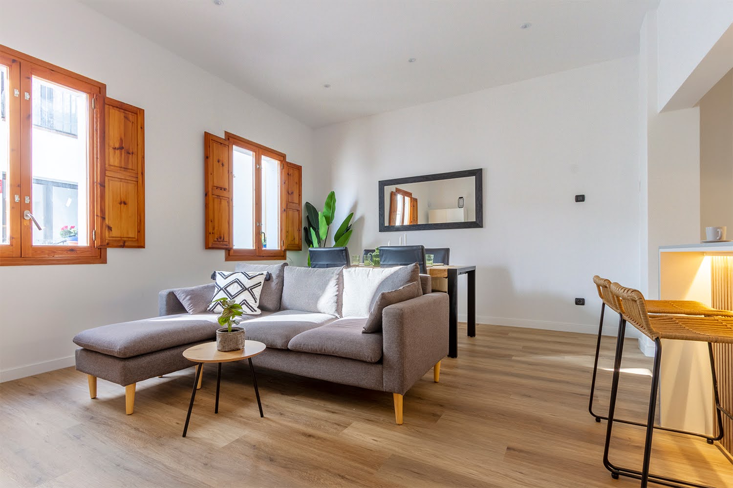 Vivienda en buen estado que se actualiza para mejorar su posicionamiento en alquiler vacacional. La intervención busca elevar la percepción de calidad, potenciando la zona de día y creando un espacio más abierto, luminoso y alineado con las expectativas del usuario temporal.